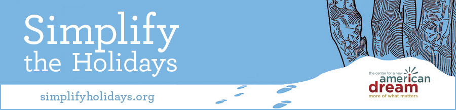 Center for a New American Dream. Take the pledge to #GiftOutsidetheBox and strive for more fun and less stuff this season. Read 6 Favorite Tips to simplify your holiday and check out the SoKind Gift Registry which encourages homemade gifts, charitable donations, and gifts of time or experiences for friends and family.