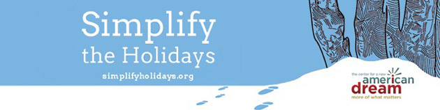 Our friends at New Dream always do a great job of providing inspiring resources and encouragement to focus on more joy and less stuff during the holiday season. Check out The More Fun, Less Stuff Holiday Gift Catalog filled with hundreds of meaningful gift ideas, or customize gifts of time or experiences with the Printable Coupon Booklet. You can also read about fun holiday service projects for the family and help your kids experience the rewards of giving back. Check out all the Simplify the Holidays resources to create new holiday traditions that involve less stress and more meaning.