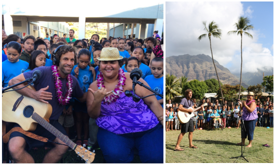 Paula Fuga recently visited Waianae Elementary School and Kamaile Academy to sing with students as part of an exciting new project with Turnaround Arts Hawaii and Playing for Change. Stay tuned! Paula is now officially a Turnaround Artist and her dedication to music and kids will be an added bonus to the program. Click here to learn more about Turnaround Arts and the positive impact it is having around the country.